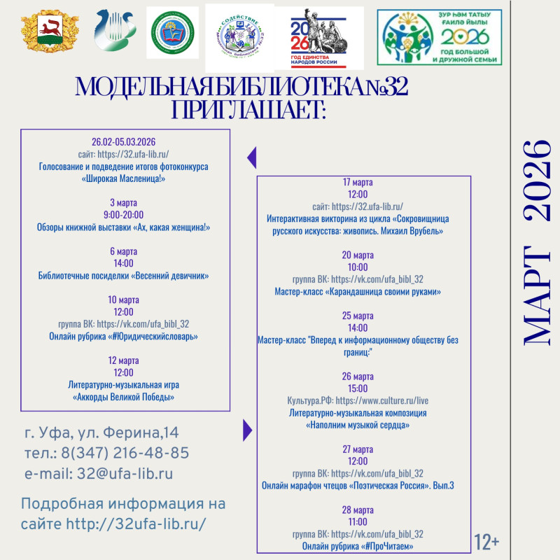 Модельная библиотека №32 приглашает на мероприятия в марте | 17.03.2026 |