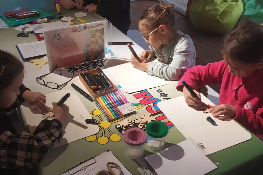 Детей и взрослых пригласили поиграть в разнообразные настольные игры, такие как «Мемо», развивающее визуальную память и знакомящее с героями любимых сказок.
