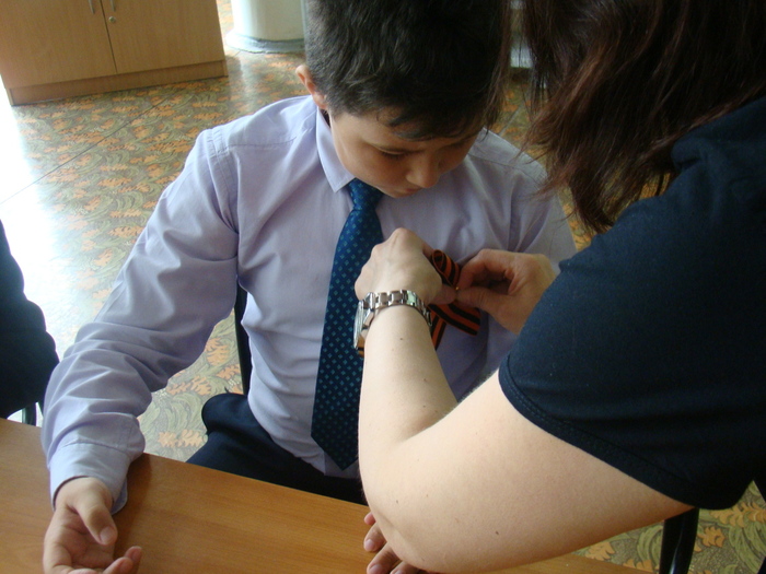 Всем посетителям, которые познакомились с выставкой, сотрудники библиотеки вручили георгиевские ленточки – символ Великой Победы.