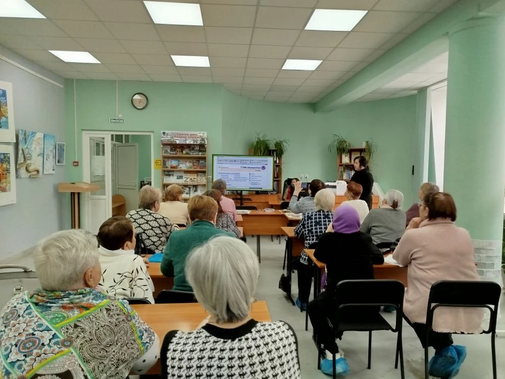 В модельной библиотеке №32 прошел мастер-класс "Вперед к информационному обществу без границ", организованный для участников клуба для пожилых людей «Сборная задорная».