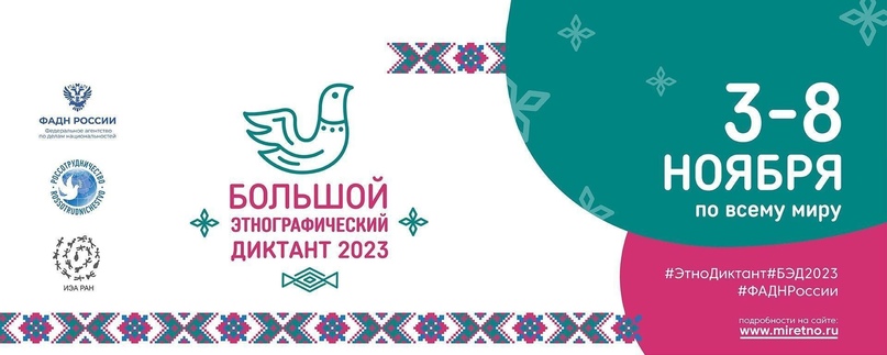 В 2023 году Международная просветительская акция «Большой этнографический диктант» состоится в восьмой раз под лозунгом «Народов много – страна одна!». Диктант проводится в канун Дня народного единства с 3 по 8 ноября 2023 года в онлайн-формате.