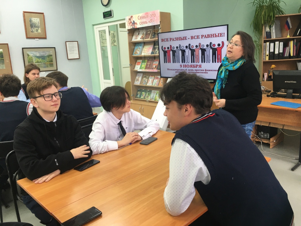 В модельной библиотеке №32 для учащихся Лицея №60 прошел урок мужества, посвящённый Международному Дню против фашизма, расизма, антисемитизма.