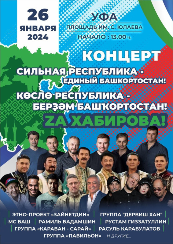 В пятницу, 26 января, в Уфе на площади перед зданием Телецентра состоится концерт в поддержку Главы Республики Башкортостан Радия Хабирова.